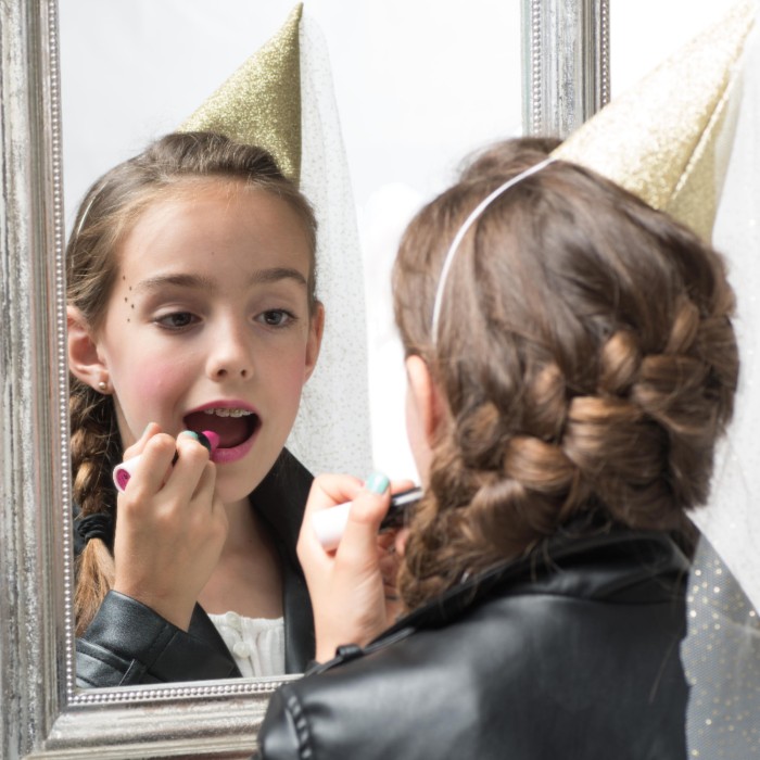 Pink lipstick with silver nacres.
